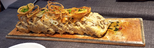 A comida estava realmente muito ruim. O bolinho de bacalhau era tudo, menos bacalhau! E deixa um ranço parecendo pele de peixe na boca. O couvert tinha um pão e um patê esquisitíssimo! E olha que costumo amar todos os pães de couvert em praticamente todos os restaurantes que vou! O bacalhau até estava no ponto, mas salgado, e o restante do prato com um sabor artificial.