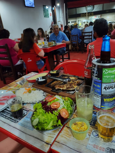 O preço é razoável nem muito caro mais também não é barato, o lugar tem espaço bom, mais que senta perto do som não consegue nem conversar, na reta do climatizador você sai com cheiro da comida e fumaça o olho chega arde . Meia porção de filé veio 4 pedaços pequenos um pingo de molho, você tem que fica pedindo prato, talher, copos e molho porque esquecem de levar. Refrigerante veio quente, caipirinha aguada não tive Boa...