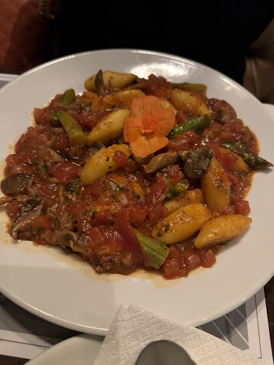 De entrada, o queijo Camembert ao forno com mel e uma salada maravilhosa com pães fresquinhos e quentinhos e para beber um Cosmopolitan e um Negroni. De prato principal, nhoque de mandioquinha e shitake vegano para mim e uma tábua de carne Angus com shitake e purê de batata inglesa (que não me recordo o nome do prato só o fato de ser bem grande rs) e para beber Gin & um Boulevar. De sobremesa dividimos um tiramisu divino.
