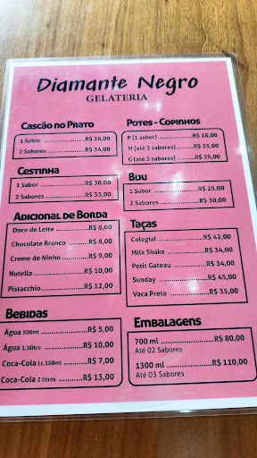 Read moreJá fui em diversas sorveterias e gelaterias em Rio Preto e nenhuma superou a Diamante Negro! Os sorvetes são artesanais e deliciosos, todos os sabores possuem pedaços deliciosos da fruta ou do chocolate e o sabor é inigualável! Os cascões e as cestinhas são feitos de forma artesanal e muito gostosos, o petit gateau também é delicioso! E o atendimento é maravilhoso, na primeira vez que fui pude provar diversos sabores, conhecer os tradicionais do local antes de escolher quais eu queria! Oferece sorvetes feitos de forma artesanal, com ingredientes de qualidade, diversos sabores de criação própria deliciosos a um valor bem acessível e sem longas filas de espera! O local também é bem tranquilo, bacana. Vou sempre e na minha opinião ela é a...