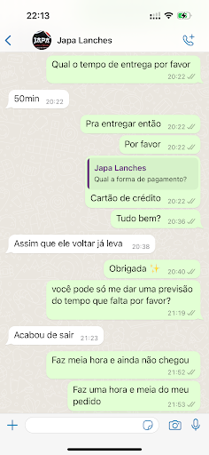 Read moreEstou esperando a 2 hrs a entrega, vc liga por que é um tempo mais do que o normal p entrega, e o funcionário com toda arrogância fala quer cancelar o pedido, depois de 2 horas, se o prazo que eles oferecem para entrega são de uma hora e ainda não dão nenhuma satisfação devido ao atraso, em nenhum momento ter o pudor para dar uma explicação ao cliente, quando questionei a demora me perguntaram rispistamente: Quer cancelar? foi isto que eu escutei pelo telefone, não tive nenhum respaudo pelo fornecedor, infelizmente lamentável, o produto pode ser de qualidade mas o atendimento e a entrega também contam p o sucesso de um...