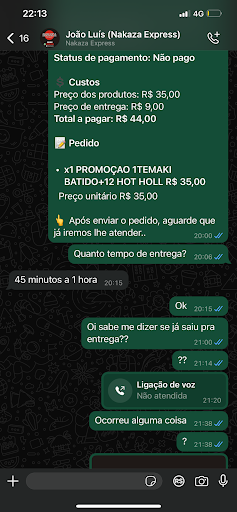 Sou cliente há pelo menos 5 anos e hoje fiquei totalmente decepcionada com o atendimento via whats app. A primeira mensagem solicitando cardápio foi enviado as 20:16 e fiz o pedido as 20:30 Não recebia confirmação, mandava mensagem perguntando se o pedido foi anotado e não tive resposta. Liguei várias vezes, pelo whats e ligação normal e nada.. algumas vezes a ligação era RECUSADA. Depois de muito tempo, consegui a confirmação do pedido. Fiz o pix do valor total de 4 lanches + entrega. Passou quase 1 hora (já era mais de 22:00) e os lanches chegaram, faltando 1 lanche. O motoqueiro disse pra gente ficar com os lanches, pra gente ligar lá e resolver direto, pq ele tinha um monte de entrega pra fazer. Liguei e adivinha? Não atenderam novamente. Mandei no whats.. e nada Peguei o carro e fui até o local pois era perto de casa (mesmo não podendo sair por causa do lock down) Ao chegar falei diretamente o q tinha acontecido para o Bigode, e reclamei do atendimento via whats app. Sugeri que ao atender um cliente, se o mesmo responde rápido, dar sequência na conversa para finalizar o pedido.. que eu entendia q eles devem ter muitos pedidos, que eu tbm trabalho com o público e sei como é, entretanto, se você demora 40 minutos a cada dúvida, fica difícil de finalizar o atendimento. Nem deram a mínimo para minha reclamação e sugestão, e ao entregar o lanche, nem um “desculpas” ouvi. Detalhe: Paguei 7,00 reais de taxa de entrega, para ter q voltar e ir buscar o...
