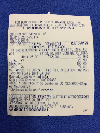 Restaurante tradicional com atendimento cortês. Serve refeição nos modelos por quilo, coma a vontade e marmita, com preços competitivos para a região da cidade. Boa variedade de pratos, entretanto, com poucas opções de saladas e carnes. Sugestão: aperfeiçoar a apresentação dos pratos no buffet e manter o grill em funcionamento durante todo o período das refeições. O atendimento das marmitas acaba furando a fila de quem está se servindo por quilo ou coma a vontade. Neste ponto, há necessidade de uma melhoria urgente, pois cada marmita ocasiona a passagem de duas pessoas, um atendente que prepara a marmita e o cliente da marmita que escolhe o que vai compor a sua marmita. Vários pratos não foram repostos no buffet, inclusive as sobremesas. Salão amplo e bem decorado, entretanto, com mesas muito próximas umas das outras. Fica a sugestão para reduzir a quantidade de mesas, proporcionando mais conforto e segurança para os clientes. Alguns dos pratos quentes estavam frios. Reduzida oferta de bebidas, tanto em sabores/marcas quanto em embalagens. Não há uma tabela com o preço das bebidas. Necessidade de uma limpeza profunda em toda a área do salão e reparo da infraestrutura, em especial dos aparelhos de ar condicionado e da iluminação (luminárias do tipo LED opacas), uma vez que o salão estava quente e pouco iluminado. Cantinho do café precisa de mais visibilidade e acessibilidade. Há necessidade de implantar uma comunicação visual que oriente os clientes no acesso ao buffet. Fila do caixa avança pelo salão. Não possui estacionamento próprio. Aceita...
