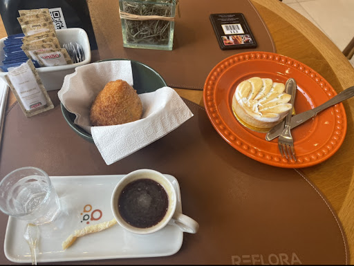 Comi a coxinha com massa de abóbora e carne seca. Achei o recheio um pouco salgado, talvez a forma que tempere a carne seca, ou talvez compense misturar a carne seca com o requeijão pra quebrar o sal. Comi das duas vezes e passou do sal. Mas ainda assim a massa me pareceu muito boa e quando mordia a parte com requeijão ficava perfeita. Achei a tortinha de limão muito doce, aí já é do meu paladar ou por ter comido após a coxinha. Agora, a tortinha de maçã, foi a melhor que comi. Daquelas sobremesas que você come e faz festa de...