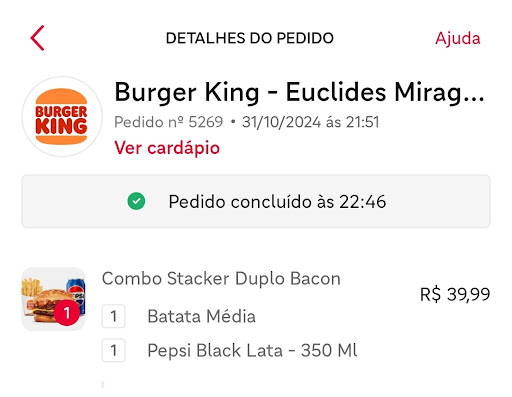 No dia 24 de fevereiro de 2022, me dirigi até o burguer king localizado na R. Maj. Antônio Domingues, 522 - Centro, São José dos Campos - SP, 12245-750. Para comprar dois whopper e um balde de batata com refrigerante e eles informaram que estava sem troco no momento e informamos a eles que ERA MELHOR CANCELAR O PEDIDO POIS NAO TINHAMOS OUTRA FORMA DE PAGAMENTO A NAO SER NO DINHEIRO, e os mesmo alegaram que estava tudo bem , que ia prosseguir com pedido pois dava muito trabalho o cancelamento era nescessário assinar algo e assim por diante , perante essa informação fizemos conforme o solicitado e aguardamos por mais de 30 minutos , conforme foi solicitado por eles , e nada de pedido ficar pronto e nada de troco , quando realmente cansamos de esperar fomos no caixa questionar o porquê pessoas que chegaram depois estavam comendo e eles informaram que era simplesmente pelo fato de não ter troco no estabelecimento! Eles nos fizeram aguardar por 30 minutos e só não foi mais porque cansamos!!! ELES SIMPLESMENTE NOS DEIXARAM ESPERANDO SEM DAR NENHUM PARECER SEM AO MENOS INFORMAR QUE A COMPRA NAO DARIA CERTO, sendo que se houvesse comunicação teríamos sim compreendido e dirigido a...