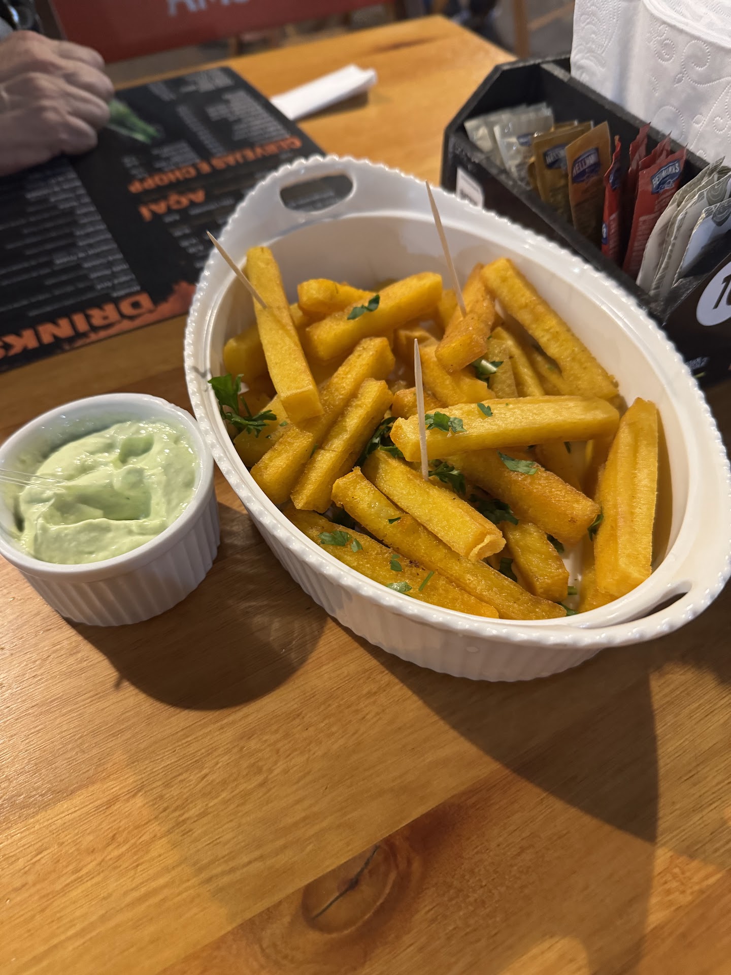 O ambiente é simples mas compensa a visita, pois a comida é muito boa, confirmando informações recebidas de amigos. A polenta frita, o molho que acompanha, o cheeseburguer de calabresa com bacon e a baguete recheada com costela e vinagrete estavam divinos. Pedi uma Coca Zero e só tinha quente e tive que beber com o gelo do copo, não havia outras opções sem açúcar. Os preços são bem justos. Os garçons são muito atenciosos. Tem 4 mesas na calçada onde um homem fumava charuto e a fumaça entrava na área interna, foi péssimo porque só é separada por uma mureta. O banheiro feminino estava limpo e junto tem um para deficientes, que estava sem tampa no vaso sanitário. Tem duas TV’s grandes então o local é bom para reunir uma turma para beber e ver futebol. Foi bom conhecer, pretendo voltar para experimentar outras delícias, pois o cardápio é...