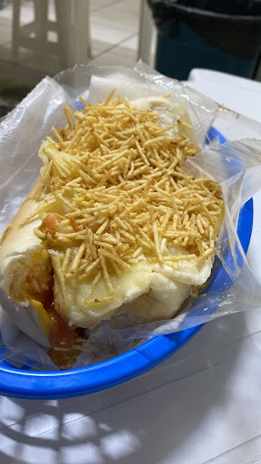 Fomos por indicação de uma conhecida. O lugar é bem simples, uma garagem em que fizeram um balcão e colocaram 4 mesas com cadeiras de plástico. Dificilmente passaria pela frente dele e, se passasse, dificilmente pararia. O cardápio tem as opções cachorro quente com 1 ou 2 salsichas, no pão ou no marmitex.... qualquer variação é conversada. basicamente é purê de batata, vinagrete e batata palha. Pedimos para viagem e cada lanche pesa quase meio kilo! O pão é macio, o purê é super leve e saboroso, o vinagrete é ótimo e a salsicha é de qualidade, não é a mais barata do mercado não! O melhor cachorro quente que comi em São...