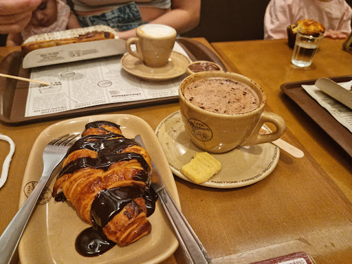 Read morePossuem método sujo de indução do cliente ao engano. Esse tipo de atendimento cabe até processo. Não são claros na informação de que os acompanhamentos são pagos. Tudo lá é extra pago. Te oferecem mas não explicam sobre preços extras. Pedi café expresso, e fatia de panetone com Nutella conforme mostrava na foto do cardápio. Perguntou se queria chantilly no café, eu disse que sim, em nenhum momento ela disse que era extra e pago. Também não explicou que a Nutella no panetone era paga. Quando vi a conta tava lá cobrado o Chantilly 5,90 e a Nutella 6,90. O problema não é pagar os extras, e sim não ser informado de que terei que pagar e só descobrir na conta. A gente se sente enganado. Aprendam com o Mc Donalds, lá te oferecem acompanhamentos, mas são claros, já explicam o preço extra. Não volto mais lá. Simples assim. Além do mais é muito caro. Minha conta ficou em 46,60. Apenas 2 cafés expressos pequeno e 1 fatia de panetone. Um absurdo. Com esse preço eu compro 1kg de panetone, e ainda...
