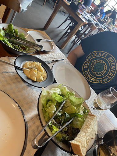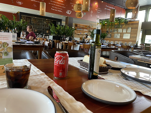 Read moreFui em um jantar em família em um domingo, quando o restaurante estavam com pouco movimento. O serviço não deixa nada a desejar; o atendimento é rápido, eficaz e a sequência de pratos é entregue sem demora. Os garçons são simpáticos, um em especial que nos atendeu foi bastante cordial, gentil e solícito, não tenho nada a reclamar quanto a isso. O ambiente e a decoração são agradáveis, tudo muito bem pensado em um espaço que harmoniza o chique e o rústico. A comida, no entanto, é bem inconveniente pelo preço que se paga para ter uma refeição no restaurante (R$155/pessoa); de entrada, temos uma sopa que mais parece água de macarrão (anêmica e rala) com alguns capelettis frágeis boiando. Logo depois, uma rodada de saladas - ou melhor, de folhagens amargas e murchas - com alguns tomates cereja aqui e ali, acompanhada por sofríveis galetos, que de tão esquálidos, são mais a ossada do animal que propriamente uma carne. Sim, eu sei, galetos são normalmente menores, mas isso não faz com que seja tolerável galetos miúdos e carregados de pele, tão somente. Por fim, temos uma contraditória sobremesa. Uma porção de sagu (o que é justificável pela proposta do restaurante e sua origem) de vinho tinto. Ou melhor, carregado de vinho tinto, de tal forma que se sinta tanto o vinho que se torna uma sobremesa puramente alcoólica, sem qualquer equilíbrio ou balanço, uma intensidade puramente desagradável e incômoda. Posso lhe dizer que, apesar de sua fama por toda a região Sul - um destaque para Porto Alegre e Florianópolis, que apresentam uma numerosa rede de franquias desse restaurante, fico embasbacada pelo o quanto as pessoas se superam em superestimar estabelecimentos indevidos. Deixo meu...