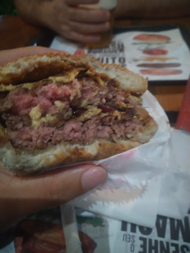 Read moreFomos em um aniversário, o lanche é saboroso, pegamos um lanche cada um com dois hambúrguer e cebola, 40 reais, pequeno tipo Macdonald's, é apenas para para degustação. Os preços de bebidas também não são razoáveis. Com relação ao preparo, pedi mal passado, um estava, o outro não estava, estava ao ponto, não acompanha maionese, só catchup e mostarda, o casal que estava conosco pegou porque acompanha batata (crinkle), depois pegaram um para nós (obrigado!), baita pisada na bola. Com relação ao atendimento, bom, mas exatamente a mesma coisa que praça de alimentação de shopping, pede no caixa, recebe pager chama cliente, retira no balcão, depois que come coloca a bandeja naquelas lixeiras iguais aos do shopping. Cuidado ao ir sozinho, como enche você pode ir buscar o pedido e...