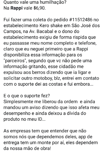 Atendimento horrível, fiz pedido duas vezes nesta lanchonete , a primeira vez veio com mais de 45 minutos de atraso, pensei deve ter ocorrido um erro , porém hoje fiz novamente um pedido pelo Rappy , as 22h40 com previsão de entrega as 23h05 , quando foi as 23h15 entrei em contato e fui informado que a lanchonete já tinha fechado , e que não tinha como entregar meu pedido , e cancelaram meu pedido ,se não tivesse ligado não seria avisado , tinha um cupom de desconto e devido o cancelamento não possuo mais, o gerente me informou que o aplicativo não avisou porém a primeira pessoa que me atendeu verificou e viu que tinha um pedido as 22h40 , muita falta de respeito, mais enfim. não comprarei mais devido o mal atendimento dos funcionários...