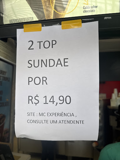 Read moreHoje 07/10 pedi um MC colosso misto com adicional de calda de chocolate. Passei todas as informações no caixa e fui encaminhada para retirar ao lado. No primeiro sorvete feito, a atendente não colocou o adicional. (Eu que tive que perguntar). Jogou o mesmo fora, e fez outro. No segundo sorvete fez de creme (eu já havia deixado passar várias vezes errado em outras ocasiões). Fui falar p ela que estava errado que informei no caixa. Ela foi extremamente grosseira, dizendo que ninguém havia falado nada, ficou super mal feito, quase pela metade, o adicional se teve um dedo foi muito. Agradeci no fim e ela nem respondeu. Pensando aqui na minha casa, deveria ter chamado o gerente, eu não estava pedindo nada além do que paguei. Péssimo atendimento. E não é a primeira vez!...