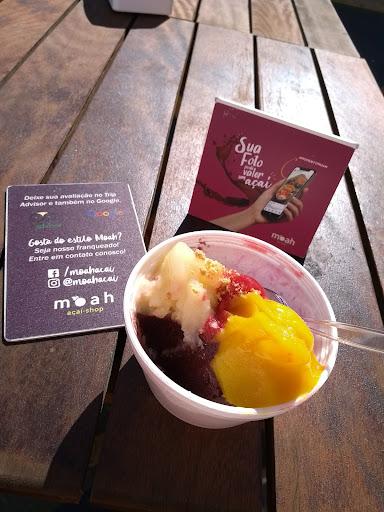 Read moreOntem eles tinham uma cliente a mais do que hoje. Desde que mudou de lugar (e acho que mudou de dono também), a sorveteria está capengando. Hoje não havia sabonete em nenhum dos banheiros, tampouco álcool em nenhum dos dispenseres pelo estabelecimento e o papel higiênico também estava indisponível. (Foi comunicado aos atendentes, mas não foi reposto.) Além disso, faltavam vários sabores de sorvete nos freezers e diversos acompanhamentos (kiwi nunca mais vi). Esta loja está desmerecendo a franquia Moah. Um fator preocupante é que o primeiro freezer fica diariamente exposto à luz solar da tarde. Layout infeliz que fizeram. Mas a percepção de hoje realmente foi de total desleixo da...