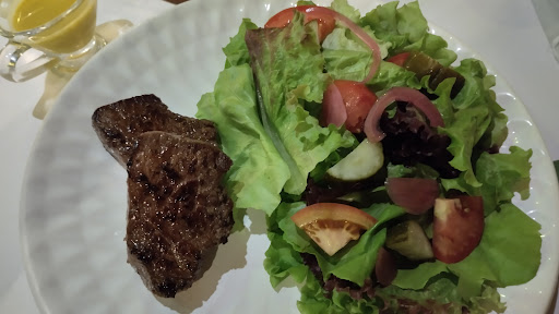 Prato principal: Pedimos Bombom de alcatra e salada POSITIVO: Ponto da carne correto, disposição da carne com a salada perfeito, molho não briga com o gosto da carne, deixando tudo muito bem harmônico. NEGATIVO: Para um Bombom de alcatra, estava dura, um simples erro de corte o que deixou ela bem borrachuda.