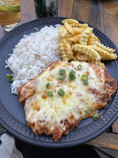 AVALIAÇÃO CARNES: Fomos ao Pasq no almoço e pedimos um drink de gin speciale da casa que era lindo e super bem servido, pedimos também o Cotoletta di Maiale um prato com prime rib de porco empanado e salada, a salada estava super fresca e o empanado estava bem crocante, havia um molho de tomate que estava em cima do corte e parecia que um tipo de burrata vinha por cima de tudo, achei o prato gostoso, faltou um pouco de capricho na tábua em que ele veio servido, ela já estava com fendas e se desencaixando. O outro prato pedido um Agnello al forno era um corte de paleta de cordeiro com polenta e esse prato estava maravilhoso, super bem temperado com cebolas caramelizadas que acrescentaram muito sabor e a polenta também estava deliciosa. O ambiente externo é bem agradável e a experiência no geral foi legal