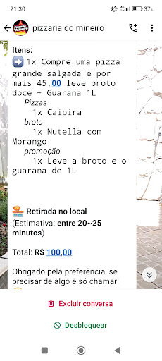Read moreNÃO COMPREM! NÃO PEÇAM... Como foi minha experiencia? A pior que eu poderia ter. Em pleno dia dos namorados (12/06/25) pedimos 3 pizzas para comemorar a data (estávamos em 3 casais), e para nossa surpresa, as pizzas simplesmente não chegaram. Tentamos todos os canais de atendimento e nada. Whatsapp é um robô (atendimento automático, como se fosse URA), o numero que consta nas redes sociais, são bloqueados para receber chamadas. Eu entendo que o dia é bem sugestivo a uma entrega mais demorada devido a demanda, mas as pizzas foram pedidas as 19h40. Hoje é dia 13/06/25 - 11h01 e não chegaram até o momento, ao invés de fazerem contato e se desculparem pelo ocorrido, me bloquearam nas redes sociais após apagarem meu comentário na foto/publicação de promoção de dia dos namorados. No mínimo, um descaso com o cliente. Pode ser sim, que as pizzas sejam deliciosas - e foi por este motivo que pedimos de lá (para experimentar). Mas infelizmente, por falta de organização do estabelecimento nunca...