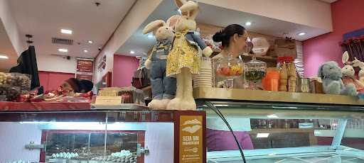 Ah, a loja está linda, com várias decorações de Páscoa, e com produtos temáticos lindos!! Minha filha ficou apaixonada pelo coelhinho feito com brigadeiro de leite ninho!! (e eu tbm!! Rsrrss...) Pena que ela ainda não pode comer, pois era APLV, e estou indo aos poucos.