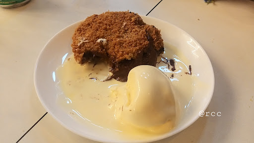 Antes mesmo de terminar nosso lanche, o garçom trouxe a sobremesa ( Nutella empanada com sorvete), achei uma delícia, apesar de o sorvete derreter porque como eu disse ele não esperou nem a gente terminar o lanche.