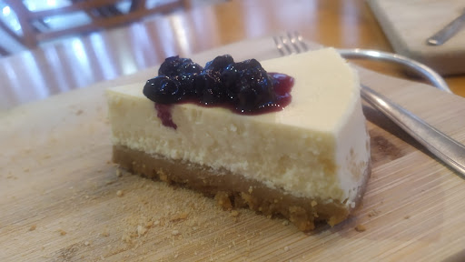 Read moreCardápio enxuto e ambiente simples, embora não seja informado tem mesinhas pet friendly. O cheesecake é bem gostoso até, mas está longe de ser o melhor de São Paulo e não sei se vale o preço. Provamos o frutas vermelhas duplo com geleia de amora, Plain com geleia de Blueberry e Duplo Chocolate com Geleia de frutas vermelhas e o melhor item foi a geleia de amora, que estava no ponto! O atendimento é um ponto fraco, havia somente uma funcionária simpática para o salão enquanto a outra cuidava do delivery de cara fechada. Embora todas as fotos aqui tenham chantilly, nos nossos pedaços não existia o acompanhamento, o que foi uma GRANDE decepção. Não sei...