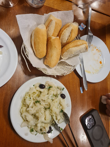 Na verdade nós dois comemos rezando!! Sempre quando vamos gostamos de pedir na entrada uma porção completa de bolinho de bacalhau frito, ou uma porção de bacalhau cozido no vapor, com azeitonas pretas. Para o prato principal: bacalhau Gomes de Sá (acredito ser um dos pratos mais pedidos da casa). E pra finalizar de sobremesa gostamos de pedir o leite crema, que é uma espécie de creme doce, com uma crosta de caramelo, tudo muito delicioso!! E sem contar que a cerveja ou qualquer outra bebida que pedir sempre vai vir bem gelada, os atendentes são muito solícitos, gentis, simpáticos e muito bem humorados!! A entrada é por ordem de chegada, e sempre que chegamos damos os nossos nomes e o garçom ou atendente preenchem nossos nomes em uma.louza e aí esperamos nossa vez. Mas sempre é rápido pra nos chamarem!! Quem quiser experimentar um lugar com a comida tipicamente portuguesa vale muito a pena ir no Academia da Gula!! Já soubemos também que alguns famosos do futebol e da música gostam de ir muito lá, por causa da comida!! E eles estão muito...