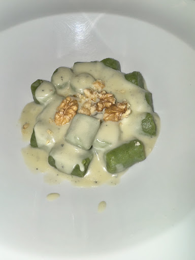 We had so many things, our dessert was the best, besides our waiter. We were not really impressed with the beef carpaccio, most of it was frozen. Plus, the salad was extremely bland. My husband ordered the filet, we tasted it, and it was very gamy. The gnocchi, which was their signature dish it was described as soft. And yes, it was, very soft. Didn’t really care for the Gorgonzola walnut gnocchi. It’s been very difficult for us to find exceptional food and flavors in Brazil. Plus the table that we sat at, we couldn’t look left because we were blinded by the street light that was coming through the restaurant, that would be a easy fix with tented glass or a...