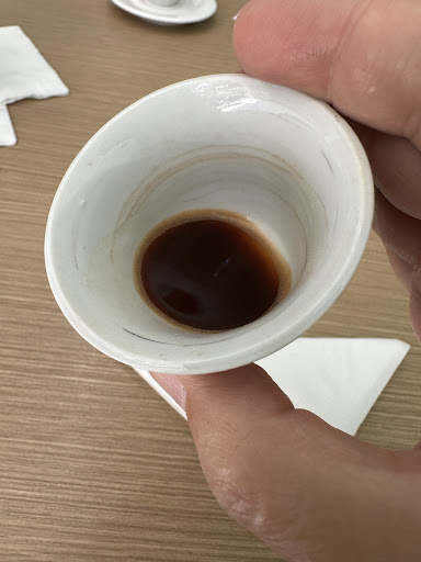 Para não ir embora sem experimentar o famoso café deles, pedi ele também. Não achei nenhum diferencial, não senti o sabor do cardamomo que eles dizem colocar e penso que boa parte das pessoas não tolera um café com sabor de café, sem o que o adoce.. a tamara que acompanha o cafe é uma forma, não tao eficiente, de adoçar aquele cafe. E claro, não funciona.