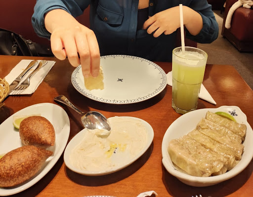 O restaurante é especializado em culinária árabe e libanesa e como:
