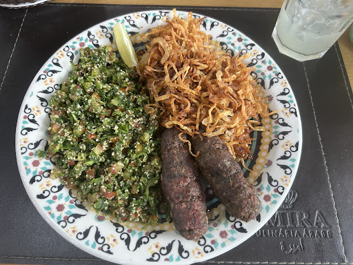 Achamos a comida muito ruim. Não tinha gosto de comida árabe, parecia uma versão simplificada / sem tempero da culinária árabe. as esfihas estavam pro tas mas requentaram no forno antes e queimou todo o zaatar… o falafel era farinhento e sem gosto. a salada feita sem cuidado, com pedaços cortados de forma grosseira. pedimos também um trio de pastas. estavam boas, mas os pães que acompanhavam estavam duros, pareciam velhos. pelo preço que pagamos dava pra ter ido em restaurantes bem melhores. pra piorar a experiência eu fui no meu aniversário pra comemorar pois sou um entusiasta da culinária árabe, mas estava tão ruim que pedimos pra colocar tudo pra viagem pra tentar requentar em casa depois. nem cantar o parabéns eu cantei, só queria ir embora. pra não falar que foi tudo ruim, o atendimento foi dentro do esperado, pessoal gentil e educado. mas a comida em si não...