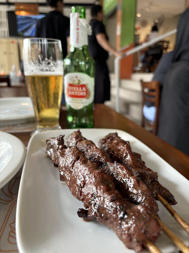 Read moreA comida é boa e tem o preço até justo para a região. Precisam se atentar ao ponto do espeto, algumas vezes que fui lá, me serviram espetos que estavam muito passados, secos, e com gosto e aparência de queimado. Normalmente são os de frango que vêm assim. Trouxeram a comida rápido na última vez que fui, mas tiveram outras vezes em que o restaurante não estava cheio e demoraram demais para trazer, por exemplo, uma guarnição de arroz e feijão, que são comidas já prontas, diferente...