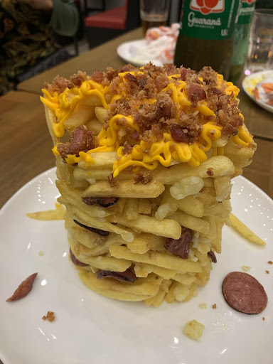 O hot dog que minha esposa pediu estava bem saboroso tem um tamanho bom, pedimos também porções de batata e nuggets e cebola para acompanhar pois estávamos em 6 pessoas.