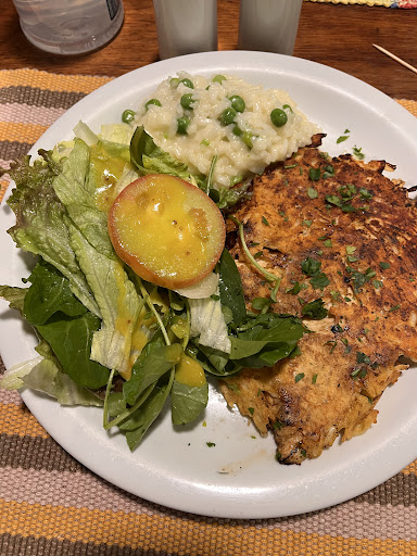 Sensacional! Primeira vez que fui, amigas me levaram! Ambiente aconchegante, poucas mesas, mas é bom assim mesmo, nada tão grandioso. Pequenino e perfeito. Funcionários atenciosos, a dona é um amor, super doce, veio até a mesa nos cumprimentar e com sorriso no rosto nos deu tchauzinho qdo fomos embora. Escolhi o prato cestinha de parmesão, com risoto de alho poró mignon com pimenta rosa, tem às sextas feiras. Estava maravilhoso, muito bom, comida quentinha e super saborosa. Vale a pena conhecer e frequentar!! 😊❤️👏🏼 Divino!!! Sem falar da sobremesa... Delicia de banana... Socorro... Suspiro mole em cima, creme delicioso e banana com calda embaixo, não é muiiiito doce, é simplesmente uma delícia feita com a banana....