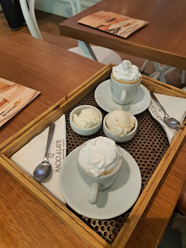 Read moreÓtima opção para se descontrair em um domingo a tarde, a primeira vez que encontro uma bacio di latte com opções de bolos, achei fantástico! Sempre que ia ao Bacio Do Latte ia com aquela ideia fixa de sorvete, mas hoje fiquei realmente tentada com as opções de bolo apresentados por esta loja, então decidi experimentar o bolo de cenoura com chocolate quente. O atendimento demorou mais do que eu esperava, k atendente pediu que eu aguarda -se na mesa que ele traria até mim meu pedido, foi o que fiz, porém achei que 15 minutos aguardando por um bolo que já estava pronto e um chocolate quente foi muito, mas aguardei pacientemente. Chegando meu pedido experimentei o bolo de cenoura, ele estava com a massa ressecada e frio demais, parecia que era um bolo de alguns dias, tive a ideia então de cobri-lo com a chocolate quente que eu havia pedido juntamente com bolo, que ideia fantástica! O bolo se tornou mais agradável e saboroso, me deliciei. Fica a dica ao gerente ou responsável para que fiquem mais atentos a qualidade dos alimentos oferecidos ao seu público, para que sejam frascos e quanto ao atendimento pode4ia ser...