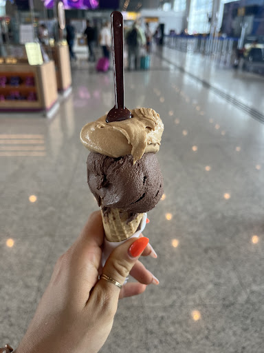 Read moreA ótima Gelateria Bacio Di Latte fica abrigada dentro do aeroporto Internacional de Guarulhos em São Paulo, disponibiliza um ótimo ambiente, muito bem decorado, aconchegante e bastante colorido e oferece um ótimo e variado menu de sorvetes. A rede da Bacio Di Latte se diferencia por usar uma receita italiana na fabricação de sorvetes artesanais do tipo Gelato que tem adição de uma quantidade maior de creme de leite e leite do que os sorvetes comuns, o que os deixa com mais cremosidade e textura sem igual, o sorvete é preparado diariamente na própria loja e são utilizados apenas ingredientes de alta qualidade. O atendimento é impecável, o pessoal é muito alegre, atencioso e cordial e são incansáveis em dirimir qualquer dúvida existente, e, caso o cliente tenha alguma dúvida na escolha, eles dão pequenas provas dos sabores disponíveis para auxiliar na tomada de decisão. O valores são um pouco mais elevados que a concorrência, mas compensam pela alta qualidade e sabor, aceitam todos...