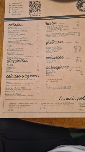 Read morePrimeira vez que estivemos no Balderi e a experiência foi ótima! Antes de sair de casa ligamos para saber se poderíamos sentar nas mesas externas com nosso dog e a resposta foi que sim. Chegando lá por volta das 12h15, todas as mesas externas estavam disponíveis e assim podemos escolher uma que ficássemos mais confortáveis com o Costelinha. Ponto positivo por aceitarem pet, mas quem é dono de pet geralmente sempre fica feliz quando um garçom traz um potinho de água pro seu amigo! Rs (não foi dessa vez). Falando agora sobre a comida, recomendo de olhos fechados pedirem as bruschettas! Nós pedimos o "quarteto" com 4 sabores diferentes e todas estavam bem grandes e deliciosas. Nós queríamos experimentar a lasagna, e por sugestão do próprio garçom (atendimento muito simpático por sinal) , ele disse que normalmente o pessoal que pede entrada geralmente divide a lasagna individual porque é bem servida ( e realmente é muito bem servida). Pedimos a bologna e estava uma delícia, massa leve e molho muito saboroso. Para sobremesa, como temos o "zóio grande" pedimos 2 sobremesas da semana, um pudim de pistache e um tiramissu. Ambas estavam gostosas, pra quem é mais de açúcar recomendo o pudim de pistache. Já o tiramissu poderia ter um gostinho de café mais pronunciado para o meu paladar. Em resumo, adoramos o restaurante e com certeza voltaremos mais vezes.