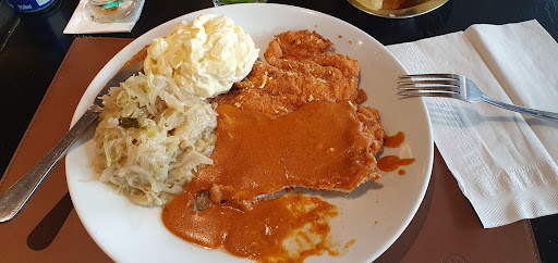 Boas opções de comida alemã entre outras diversas. Serviço atencioso e o ambiente interno com ar foi mais confortável pra temperatura do dia (32°C). O paprica schnitzel podia ter mais molho, mas foi rápido. A garçonete perguntou por uma entrada pois disse que ia demorar uns 40 minutos. Demorou uns 15 no máximo. Schnitzel competente, sourkraut um pouco salgado pro meu paladar e podia ter mais molho. Faltou o applestrudell. O forno quebrou e eles são assados na hora. Falei que poderia comer frio mas não era o caso.