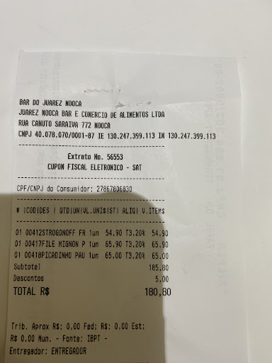 I don't even recommend going through the door, bad service in this bar, to try to get a drink you have to ask at least 4 times and wait 40 minutes, we asked for a child seat several times we were simply ignored by the staff, they served us a rump stake that it was delivered with the cold plate (which for the price it charges is a shame) just to give you an idea the child seat was only delivered to the table when we asked for the bill, I recommend any bakery, pub or stall in mooca because this place because Bar do Juarez is a disgrace, if you want to spend a lot of money, be ignored by a waiter, this is the place, today we throw R$ 800.00 in the trash, mediocre service, I will never go back to this bar again you guys managed to be the worst of the worst, SHAMEFUL ,...