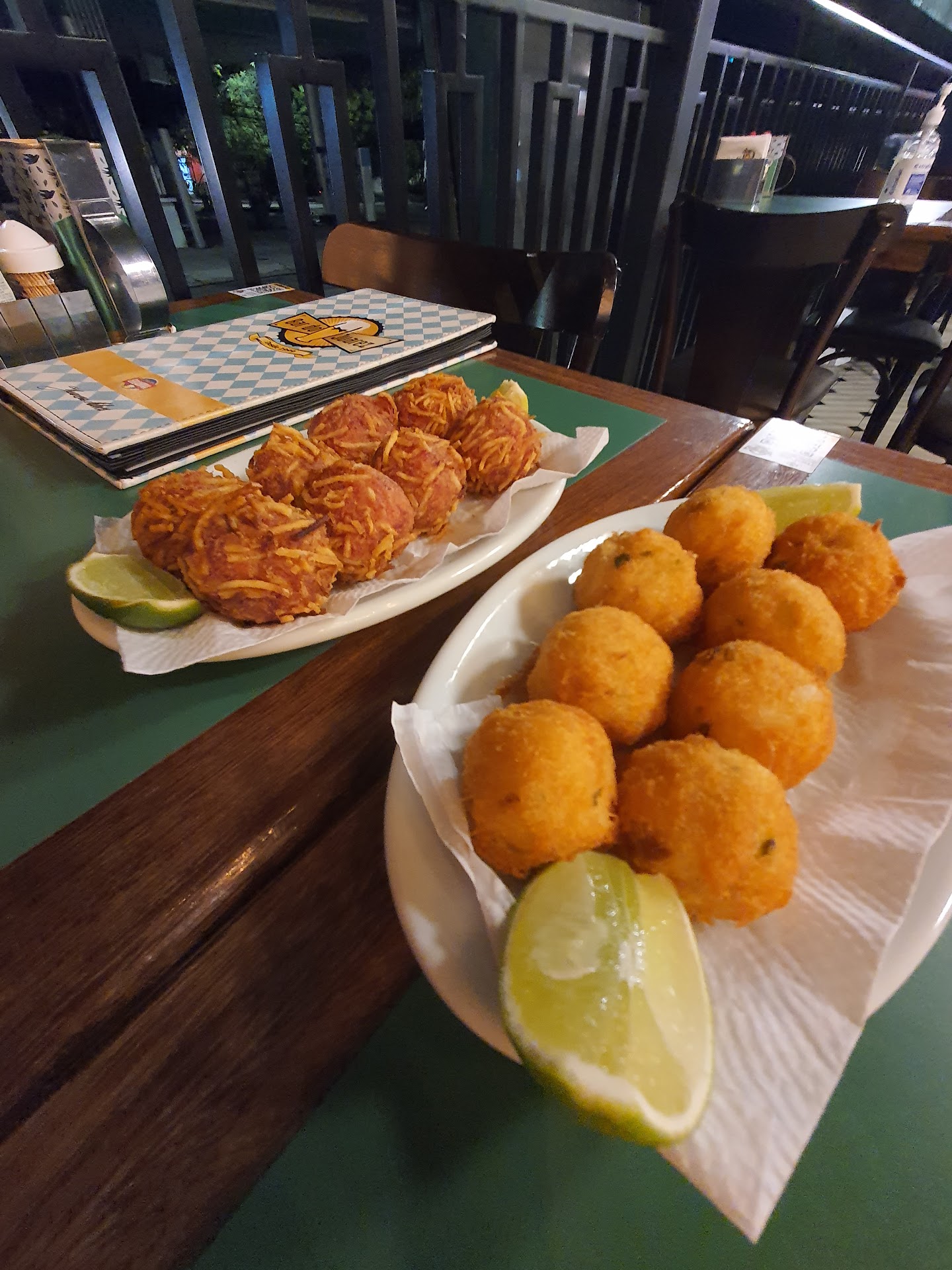 Os pratos, como sempre, são uma delícia. O bolinho de carne seca é sensacional, sou apaixonado. Conheci também o bolinho de bacalhau da casa para acompanhar meu Chopp. São porções sequinhas, saborosas e crocantes. Apesar da pouca quantidade (8 unidades cada) os bolinhos são rechonchudos e enchem bem.