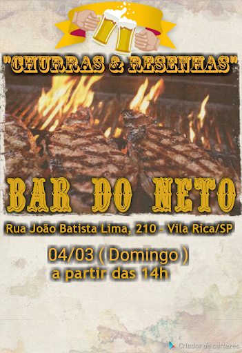 Churas & Resenhas Confraternização no Bar do Neto JAIR vai receber os kits dø churras... 👇🏾 Cada um tem que trazer 1kg de carne. ( ou algum ingrediente para comer )