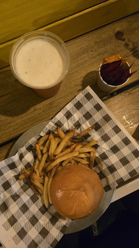 A bebida é boa, só que é muito cara (18 ou 20 reais pra 250ml de cerveja e 250ml de colarinho); Uma porção de linguiça que veio praticamente crua, quase conseguia escutar os grunhidos do porco, mas pelo menos estava "comível" (minha namorada não achou). De 2 em 2 minutos eles passavam na nossa mesa perguntando se minha namorada ia terminar o drink dela que estava na metade ainda (ela bebe devagar, ela não tá virando o drink com 400ml de vodka como se fosse um shot).