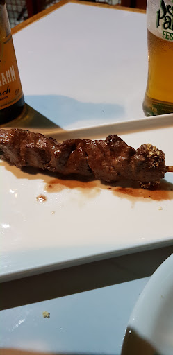 Cheguei com uma amiga e o primeiro atendente (homem de óculos) nos recebeu com cara fechada (quem trabalha com público precisa ser simpático, fica essa dica). Ele logo se sentou em outra mesa com seus amigos. Já deu pra entender que ele não queria trabalhar. Tudo bem, outro veio nos atender com mais simpatia. Pedimos uma espeto de carne e um de costela. O de costela era pura gordura e estava quase queimado (dava a sensação que foi frito ou feito em churrasqueira elétrica, requentado... não sei. Tava PÉSSIMO) e o de carne bem passado tb, quase queimado. Só comemos pois estavam morrendo de fome. Paramos lá somente pra comer. Além do preço ser maior que os espetos de bares próximos, a qualidade é péssima.