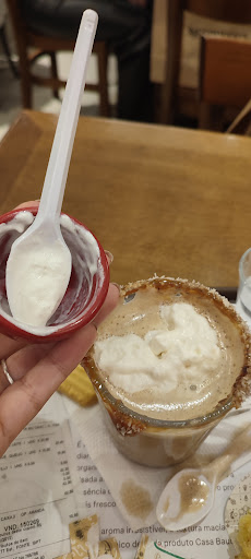Amo tomar café na Bauducco sempre que estou no shopping. Porém, a última vez que estive na franquia Casa Bauducco do shopping Morumbi a atendente perguntou se eu gostaria de chantilly no meu cappuccino de doce de leite (que custa 20 reais) e respondi que sim pois na foto do cappuccino ele parecia já ter chantilly na decoração pois ele é especial. Aí quando fui ver, cobraram 5 reais a mais pelo chantilly que veio a quantidade de uma COLHER de plástico ao lado do café. Não colocaram nem em cima da bebida, a imagem da colherzinha de plástico com essa colherada de chantilly industrializado é uma vergonha kkkkk Se vão cobrar (sem avisar) pelo chantilly na bebida, que seja em cima dela, bem bonito, para decorar. Não uma colher minuscula de plástico pra você colocar boiando no seu café. Não esperava essa entrega pela Bauducco, olha que coisa feia essa migalha de chantilly na...