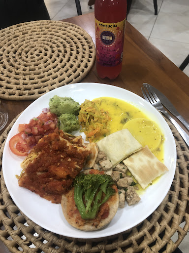 Read moreInfelizmente não gostei dessa primeira experiência em relação ao sabor da comida. A lasanha estava com a massa muito molenga, a moqueca não era gostosa, a pizza pequena com brócolis em cima tinha uma massa muito dura, o tofu não estava muito temperado e a salada de cenoura também não era boa. Gostei bastante do sabor da kombucha que peguei: Hibisco com frutas vermelhas da Bewow. O ambiente é muito bonito e bem decorado, a cozinha tem uma parte de vidro para ver o seu interior e o pessoal da cozinha é muito simpático. Na entrada do restaurante tinha uma feirinha de produtos orgânicos, fui numa quarta-feira. O produtor vende ovos e se você chamar ele no WhatsApp pedindo ele te envia como as galinhas vivem. Achei muitíssimo interessante. Não sei ainda...