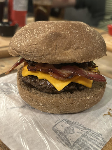 Sou vegetariana e o fato de ter um lugar que ofereça opções vegetarianas (ainda por cima sem soja) mesmo não sendo um restaurante vegetariano já anima muito, pois posso facilmente chamar meus amigos sem que eles torçam o nariz e vice-versa. Sobre o ambiente de lá, simplesmente incrível, bem descontraído, mas já aviso que é relativamente pequeno, se for um grupo grande, pode acabar não tendo lugares, ou ficarem dispersos pelo ambiente. Os funcionários de lá são incríveis, bem-humorados, conversam com os clientes, um carisma ímpar. Sobre a comida então, maravilhosa, todos que foram comigo aprovaram as opções com carne e a vegetariana é muito boa também, além do hambúrguer não deixe de pedir as batatas, pois estas são simplesmente incríveis e com a maionese de alho acompanhando ainda, não tem para ninguém. Em questão de preço, achei justíssimo, os hambúrgueres estão com preço bem próximos da média e qualquer coisa é só pedir o cardápio pela página do Facebook para não ter surpresa, algumas vezes tem cupons de desconto no peixe urbano e afins, vale a pena dar uma olhada também. Falando em localização tem ir com cuidado, pois tem um muro na frente e se você se descuidar passa pela hamburgueria e nem percebe, isso claro, se não for no dia que tiver música ao vivo, caso tenha, será bem fácil de...