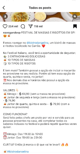 Read moreExperiência nada boa e muito menos honesta! Fui no dia 15/11 com meu namorado e já achei estranho antes mesmo de chegar no local pois tem um destaque no Instagram deles com um valor e informações totalmente claras e de entendimento fácil de qualquer pessoa sobre a “experiência italiana”. No destaque consta um valor do rodízio e informa as datas e horários que esse valor será válido, lá informa de feriados no horário da janta o valor é de 74,90 e esse destaque estava lá desde setembro.