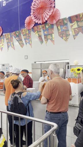 Contra: espaço físico pequeno para muitas pessoas, proteína que no caso é a carne, é servido quase nada, feijão no caso que é o que sustenta, quando é servido é uma concha que a funcionária não coloca todo e na maioria das vezes vem só água, ou seja o caldo, comer com o prato cheio de caldo não pega legal. Outra questão, o prato laranja nem sempre é para que quer comer mais, a maioria das vezes a pessoa lá coloca a mesma quantidade do marrom. No mais, alimenta muita gente que não leva almoço pro trabalho, pessoas que vem de fora trabalhar e não comprou fogao e gás, e sobretudo para pessoas vi estável em...