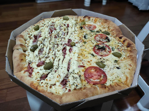Read moreSou condutor socorrista e complemento minha renda como entregador de app (moto), certo dia retirei um pedido nessa pizzaria, fazendo a entrega até a residência do cliente, confesso q fui atraído pelo cheiro, no dia de hj (13/05), pessoalmente fiz meu pedido e como entregador retornei a minha residência para que assim desfrutássemos dessa iguaria....resultado.... não sobrou nada.... Além do atendimento e receptividade que o proprietário proporcionou a mim....sobrou apenas os caroços das azeitonas... Simplesmente fantástico tudo...massa, recheio, sabor, textura, enfim..... É realmente a verdadeira pizza........