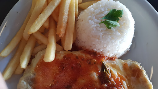 Fui bem atendido pelo Joel. Pedi um bife a parmegiana com fritas. O tempero é bom, mas no meu caso acrescentei um pouco mais de sal. Mas está do jeito que eu prefiro, do que uma comida mais salgada. Peça a pimenta caseira, bem saborosa e nem tão picante. Acompanha uma salada, que fica montada em um buffet aberto mas gelado. A rúcula estava um pouco murcha, mas a alface e cebola ok.