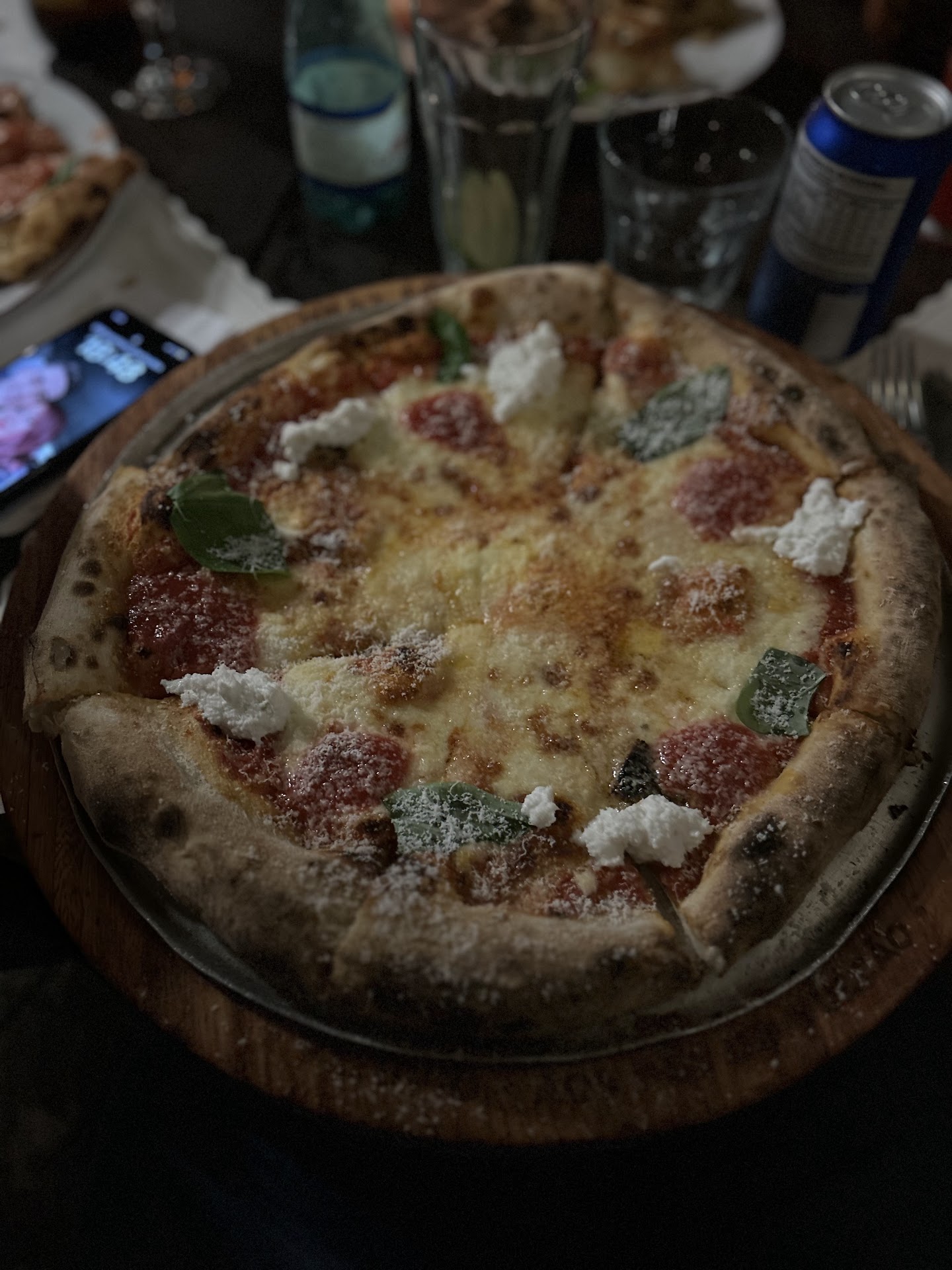 Quanto a pizza em si. Chegou fria. Isso mesmo: FRIA!!! Pela primeira vez na minha vida eu como no próprio local e a pizza vem FRIA?!?!?! Absurdo. Sem contar. Que descaradamente os garçons ficavam transitando e colocando as máquinas de cartão na nossa mesa. Recebia de outra pessoa ia lá e “guardava” na nossa mesa. Passava outro, pegava. Vinha outro e deixava outra máquina. E era assim com sal, com talheres. Não tem lugares pra depositar essas coisas? Simplesmente usam a MESA DO CLIENTE pra isso????