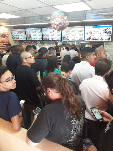 Read moreUm fast food marrom, isto é, "morromenos". Tem tudo o que os outros estabelecimentos do tipo têm (às vezes), só que com o diferencial de ser anexo ao estacionamento do Allianz Parque (Allianz Porks para os palestrinos), o que faz deste Burger King uma opção para a alimentação de quem está entrando ou saindo dos shows no referido estádio. Já fiquei postado na fila lá por um bom tempo e olha que nem era dia de evento lá no "caldeirão verde". Acabei de passar em frente e vi que parte da calçada não está cimentada e que possui um buraco que em dias de chuva gera uma bela lagoa que deve ser um paraíso para os mosquitos da dengue....