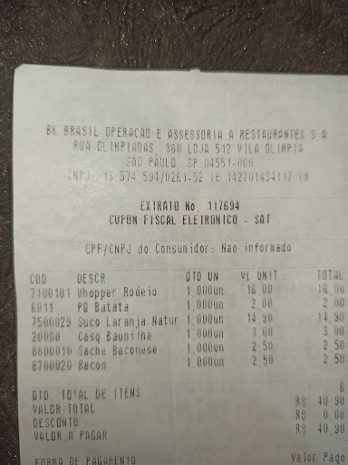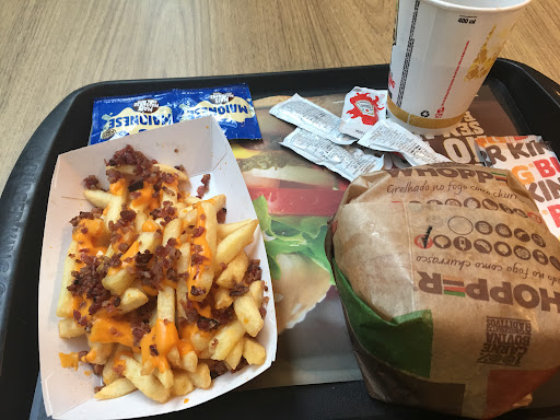 Read moreSou fã de Burger King, mas me decepcionei com este do Shopping Vila Olímpia. Fui almoçar nesta terça-feira (09/10) e pedi, junto de um colega, o combo Monster (Lanche Monster + Batatas + Milk shake Monster, que aliás, só a batata se salva). Quando o Pedido foi entregue, colocaram tudo em uma bandeja que dava para usar de chapéu de tão côncava (torta) que estava. Infelizmente, só percebi quando estava levando para a mesa e os dois milk shakes viraram e caíram no chão. Pra piorar, só deram 1 pacotinho de guardanapo. Tive que comer o lanche de mãos grudentas de açúcar. A sorte é que não caiu na roupa. E tem mais: a fila é tão desorganizada, que enquanto aguardava para fazer o Pedido, vi diversas pessoas formando fila para pedir atrás das pessoas que já estavam esperando seus pedidos. Enfim. Já deu para perceber a qualidade...
